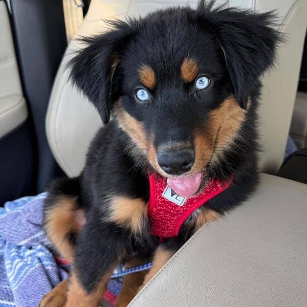Happy is the sweetest baby and gives the best hugs! He is a gorgeous Red Tri Australian Shepherd, minimal White and the most beautiful Hazel Eyes!